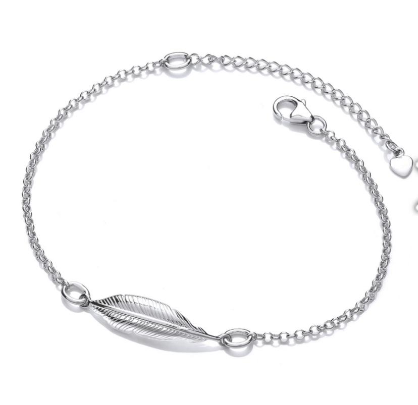 Sterling silver feather bracelet.